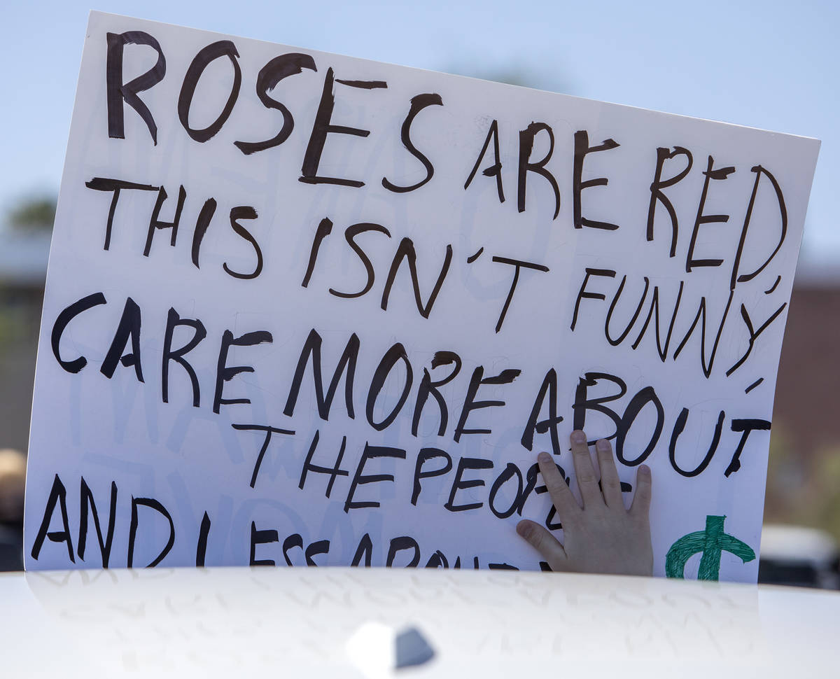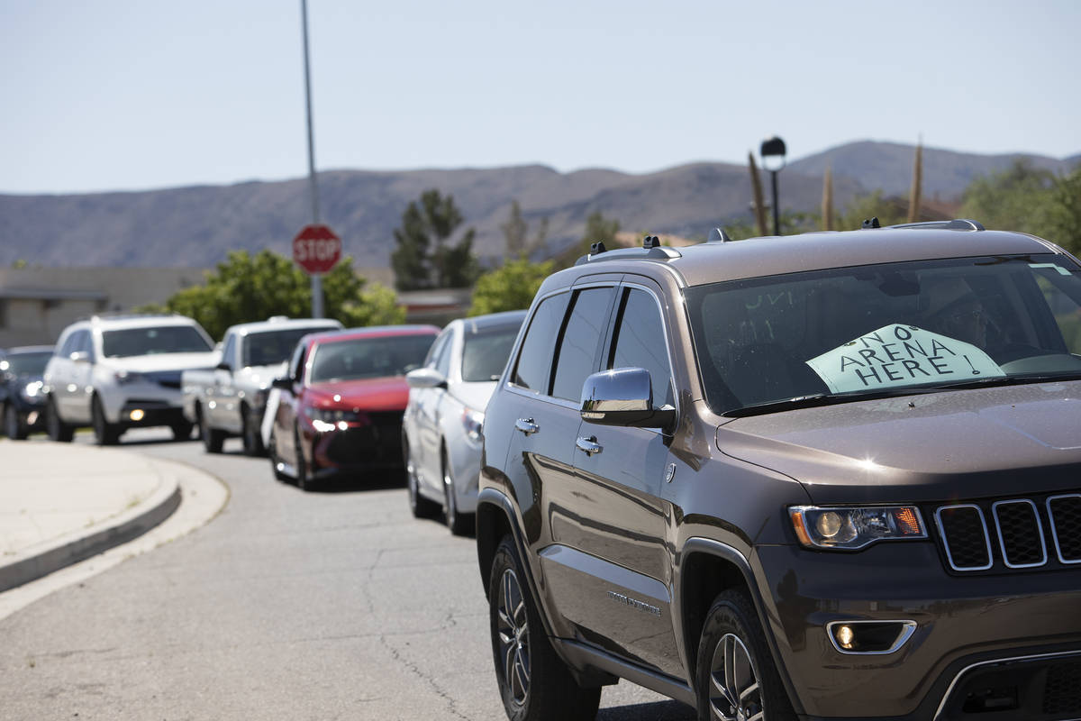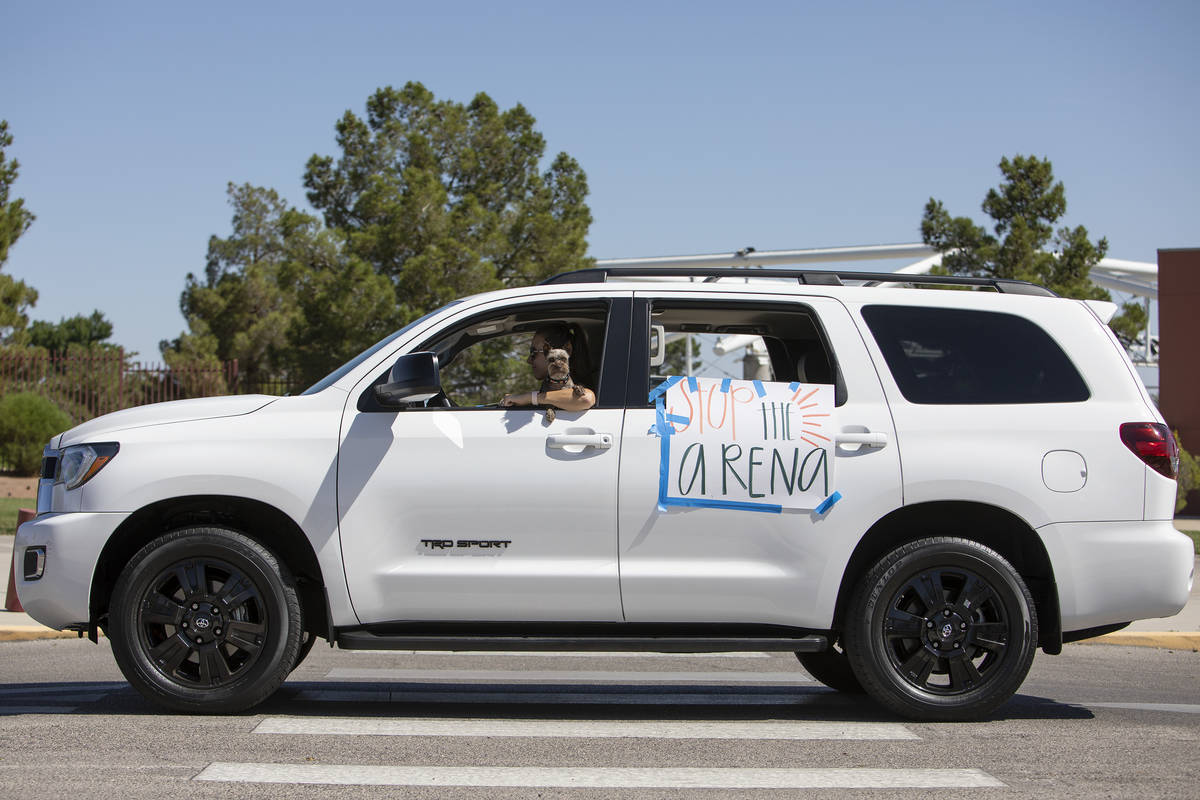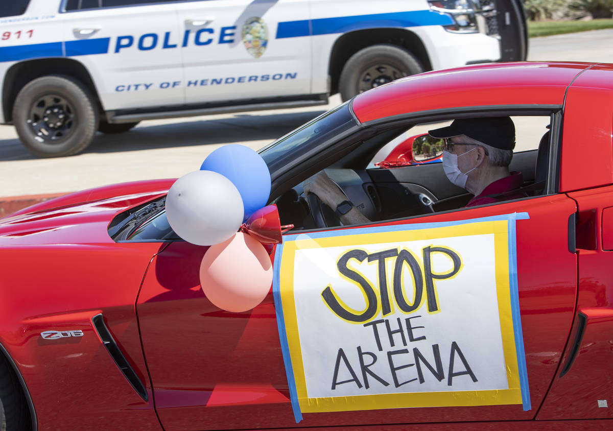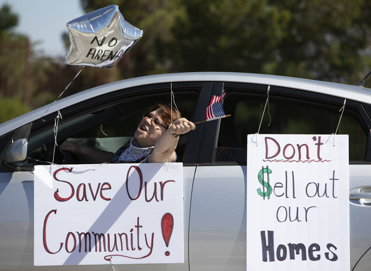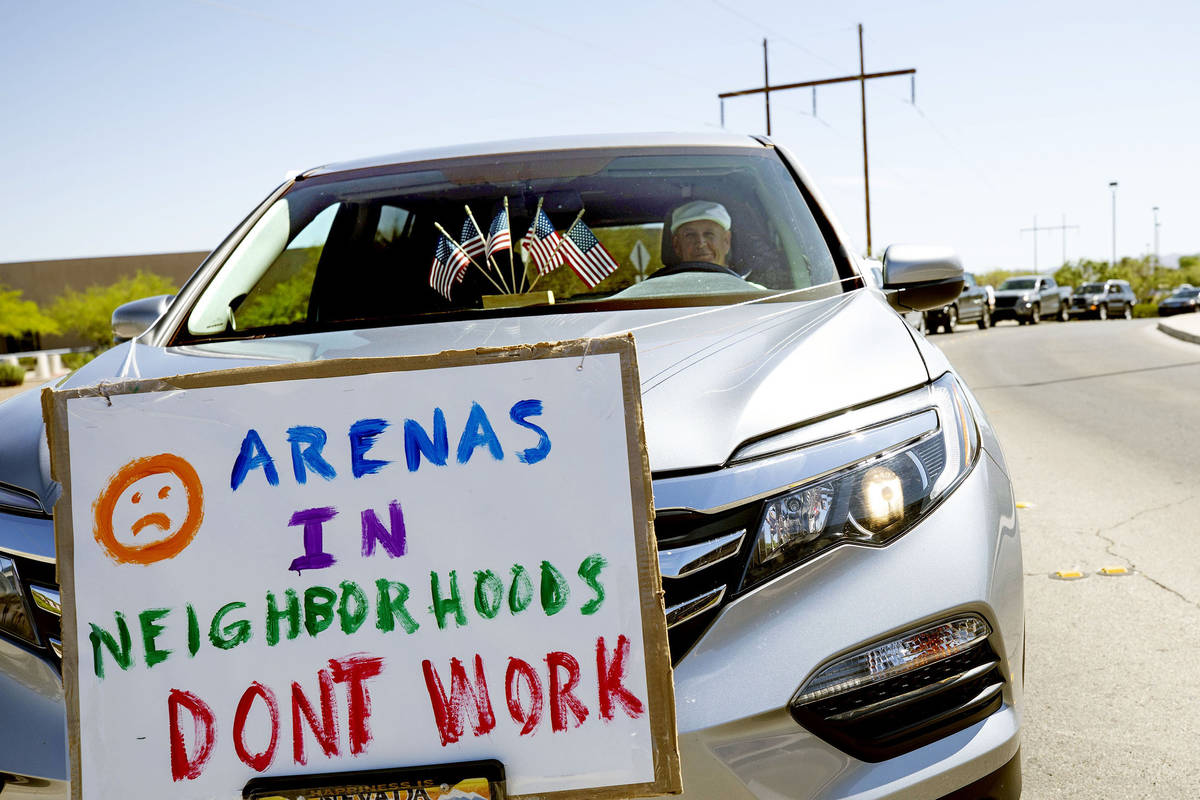 Signs were taped to some cars, with messages such as “No arena here” and “Show us the NDAs” (referring to nondisclosure agreements). And some expressed concern over home property values or called out Golden Knights owner Bill Foley.