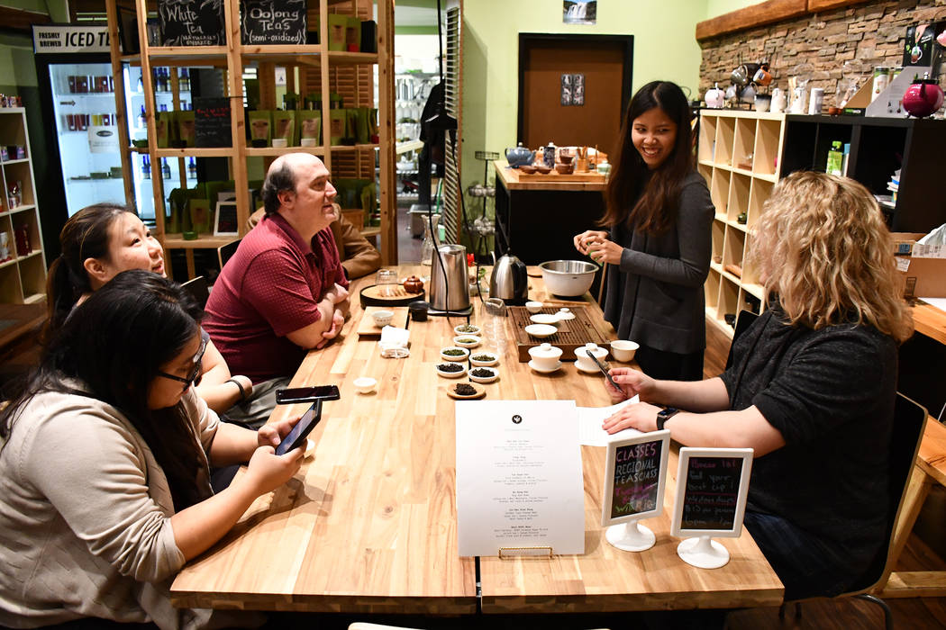 Convey, a tea-class teacher at Tea and Whisk, a Henderson tea shop, recently was joined by fellow tea enthusiasts for a class about Chinese tea. Participants sampled tea leaves and learned about regions of China where that tea is grown.