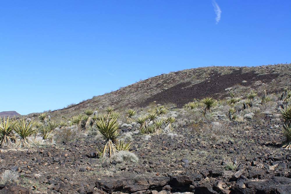 From the trailhead, at about 3,560 feet in elevation, follow the old jeep trail north for about 300 yards or so. The vegetation is pretty sparse here except for some creosote and yucca. Keep an eye out for some human-placed rocks in a row and a worn spur trail on your right. Take this path for about a minute or so and you will find the entrance to the lava tube on your left.