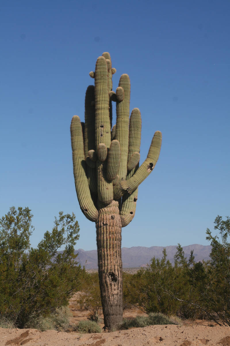 The Sonoran Desert is tough on plants, yet the saguaro is a master of survival. Look at its waxy coating, which keeps in moisture, and the hard spines, which keep all but the most determined critter from feasting on it.