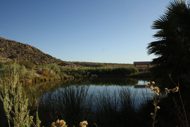 If you are up for a steep but short hike up the hill above the pond, the views from there, of Lake Mead’s Overton Arm and the South Virgin Mountains, are lovely.