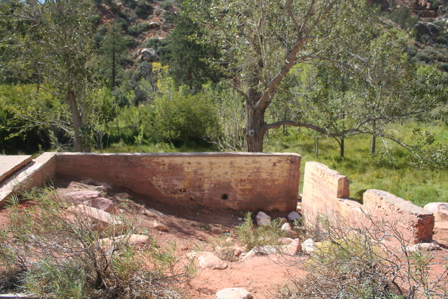 About three-quarters of a mile from the trailhead, to the south of the trail, you will find a worn spur trail that leads to the foundation of a 1920s homestead. There, Horace and Glenda Wilson built a two-story house with a fireplace and planted an apple orchard. They sold it eight years later but stayed on the property for eight more as caretakers. When the Wilsons moved to Las Vegas, the house remained empty, fell into disrepair and was vandalized. In the mid-1970s the Division of State Parks took control of the property.