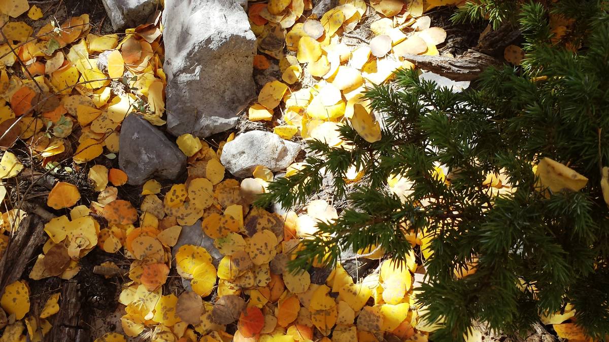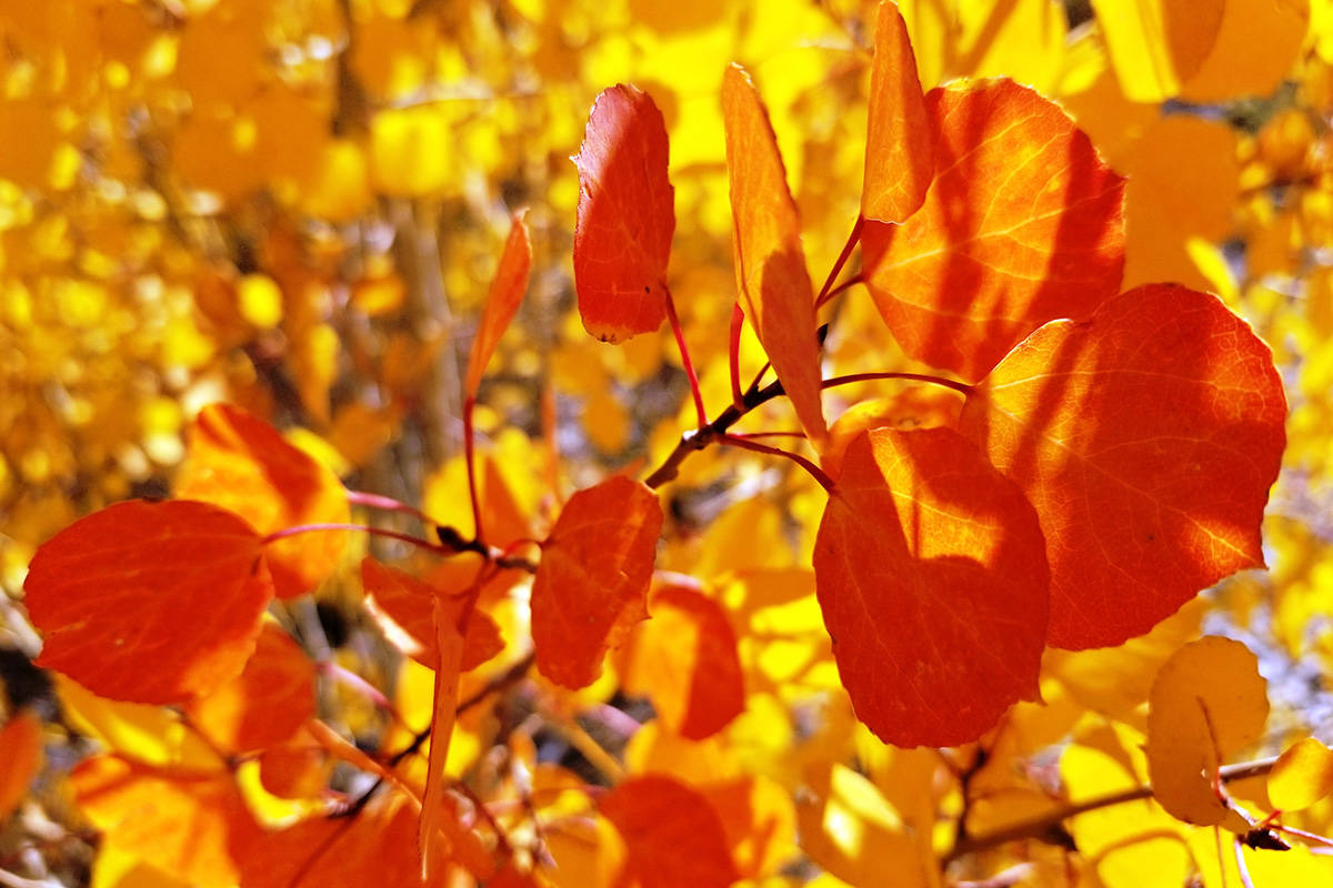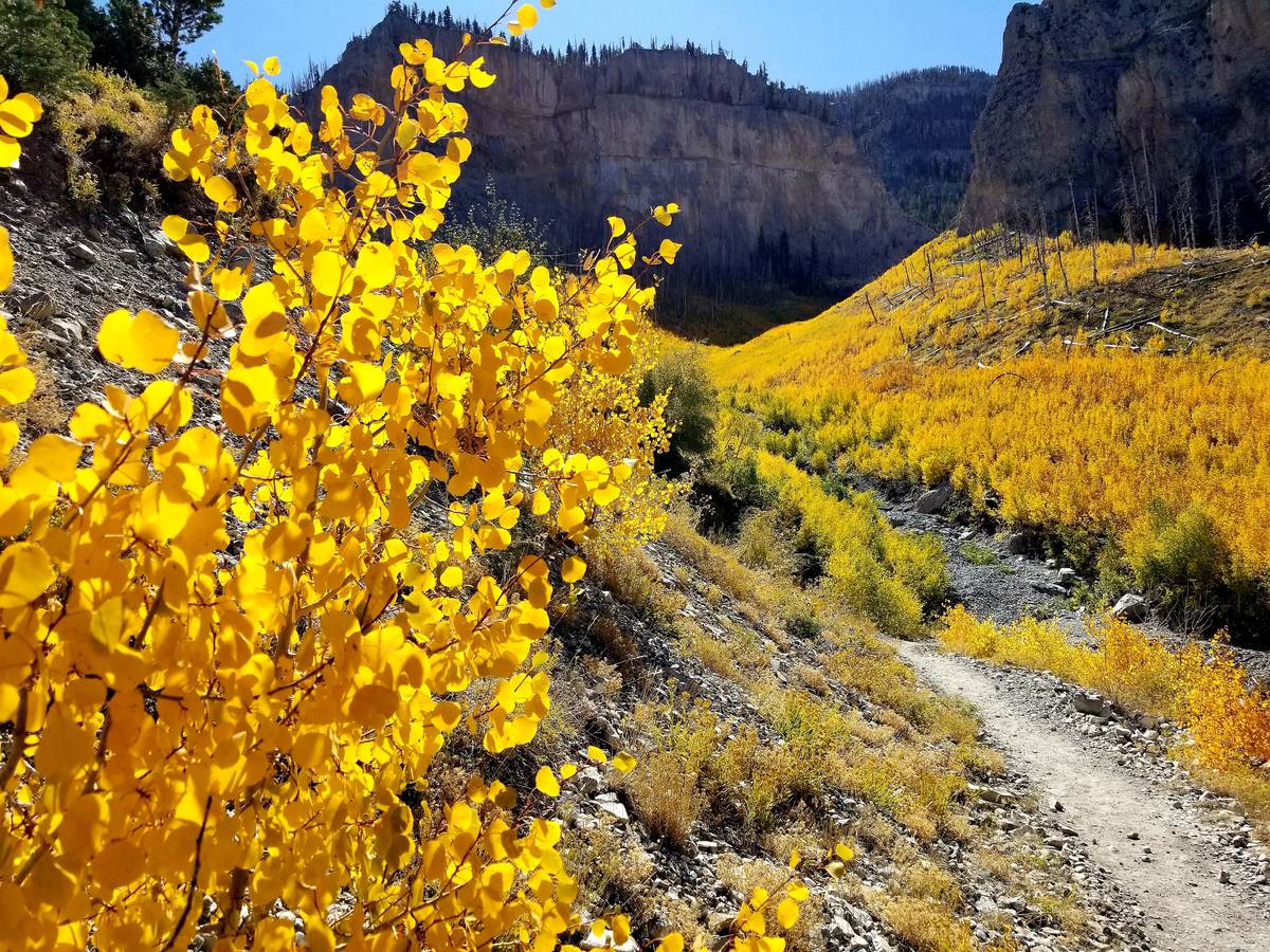 My best leaf luck typically occurs in the first days of October, when last year a yellow river of aspen on the South Loop trail appeared poised to sweep away dear friends. The most stunning autumn display happened for me one September afternoon in Trail Canyon, where an ongoing mural on my left revealed huge swaths of light orange and yellow replacing the mountainside’s usual light green and gray.