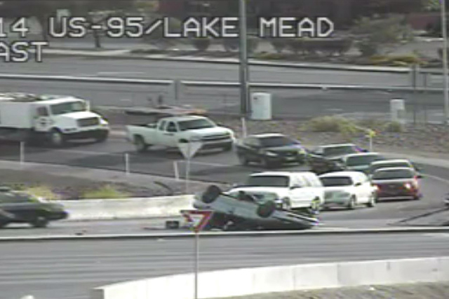 A one-vehicle rollover crash on Lake Mead Boulevard near U.S. Highway 95 slowed traffic during the Monday morning commute.