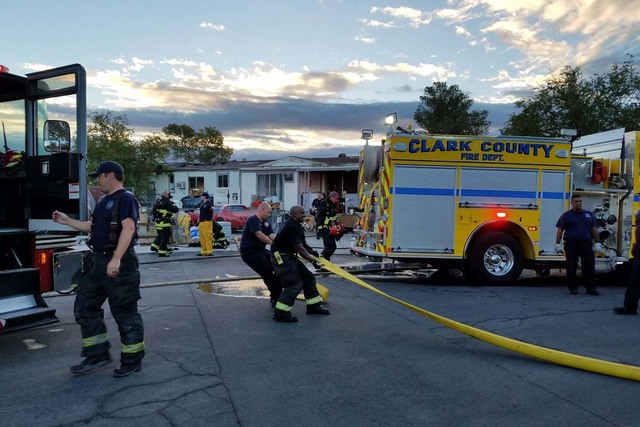 Clark County Fire Department battalion chief Chris Blackburn said the fire about 6 a.m. at 3551 Purdue Way, near North Pecos and East Gowan roads, burned a hole through the roof. Damage was contained to one room.