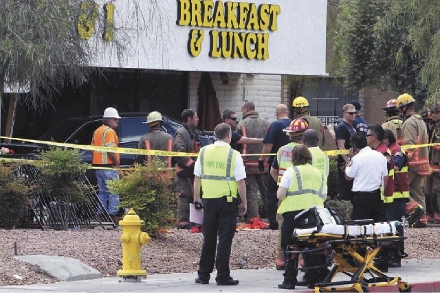 Gage Lindsey was arrested April 1, 2013, after crashing his car into the the Egg & I restaurant on Sahara Avenue near Decatur Boulevard and injuring nearly a dozen people.