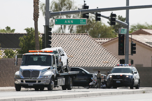 The Metropolitan Police Department responded to the crash about 10:30 a.m. near the intersection of Ann Road and Durango Drive. Metro Lt. Grant Rogers said both drivers were taken to University Medical Center and their injuries do not appear to be life-threatening.