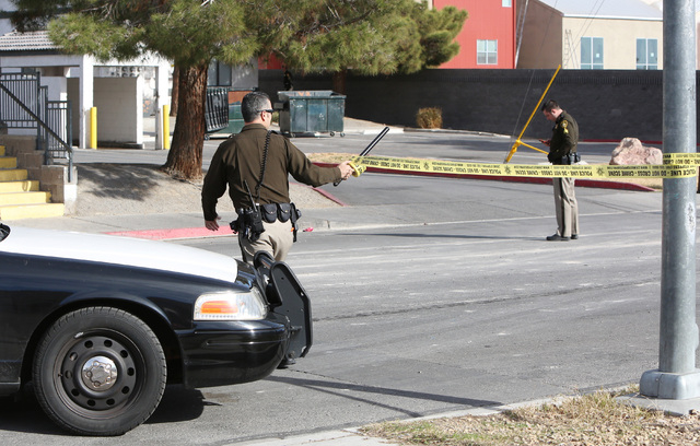 Someone Las Vegas police described only as female was caught in the line of gunfire and grazed by a bullet. She was taken to University Medical Center.