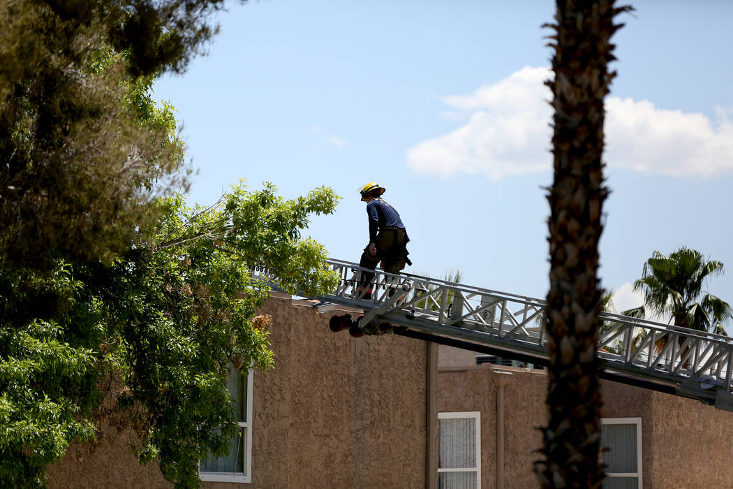 Crews received reports about 11:05 a.m. of a fire at the complex, the release said. Arriving firefighters saw heavy smoke and flames from an upstairs apartment and requested additional resources, including those from Las Vegas Fire Department.