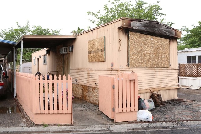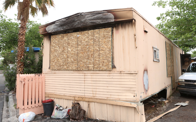 The Clark County, Las Vegas and North Las Vegas fire departments responded to the fire reported at Arcadia Mobile Home Park, 1832 Walnut Road, Space 26, Clark County Fire Department Assistant Fire Chief Larry Haydu said.