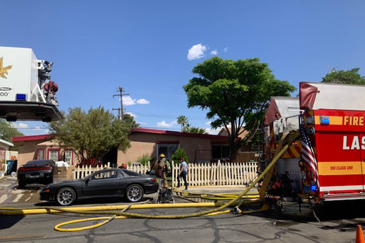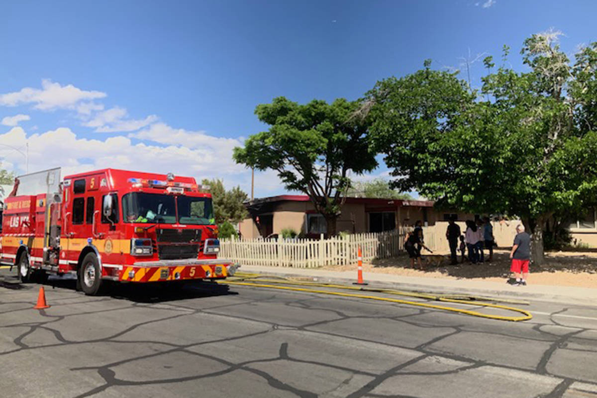 Firefighters responded just before 1:45 p.m. to a home on the 2000 block of Las Verdes Street, near Oakey and Valley View boulevards, according to the Las Vegas Fire Department Twitter account.