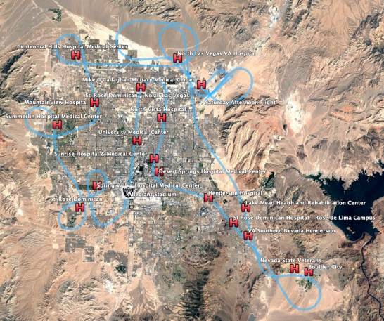The Air Force’s Thunderbirds, based at Nellis Air Force Base, performed a flyover above every hospital in the Las Vegas Valley on Saturday afternoon.