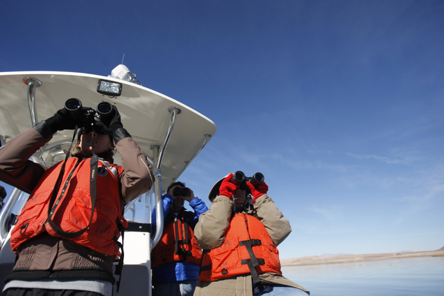 Typically, observer teams travel in boats at 15 mph or less on eight designated routes along the shorelines of lakes Mead and Mohave looking for eagles at the same time.