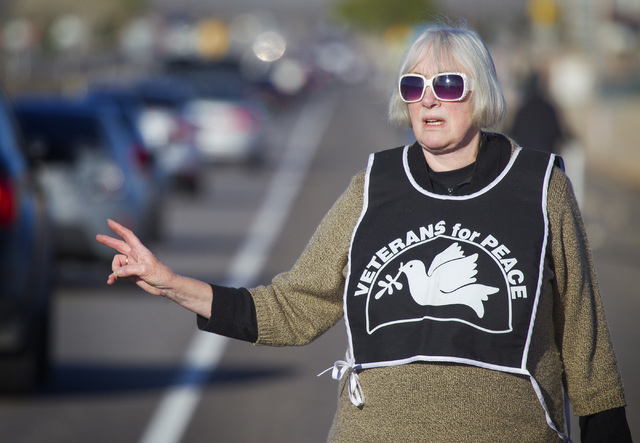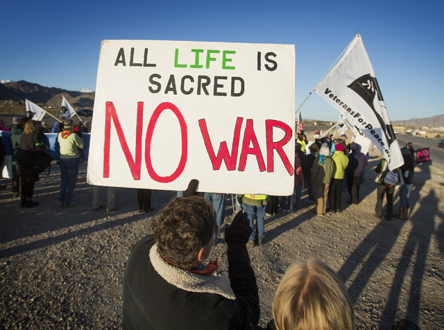 The protest was organized by contingents of peace and faith-based activists, including those from the Nevada Desert Experience, Veterans for Peace and Code Pink: Women for Peace.