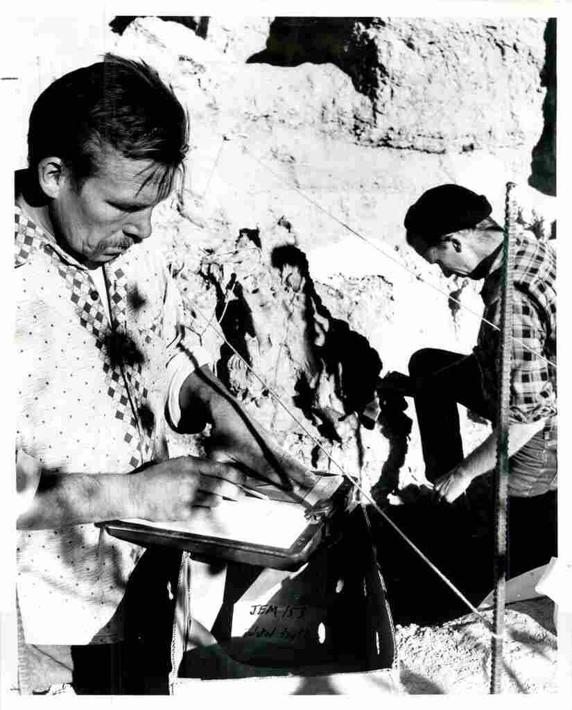 Hoping to find evidence that mammoths, camels and other Pleistocene (ice age) animals coexisted with humans, Shutler and a team of 21 archeologists spent months living in tents in the desert, using bulldozers to dig extensive trench systems and dental tools to clean off the delicate fossils found.