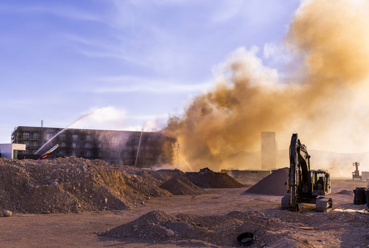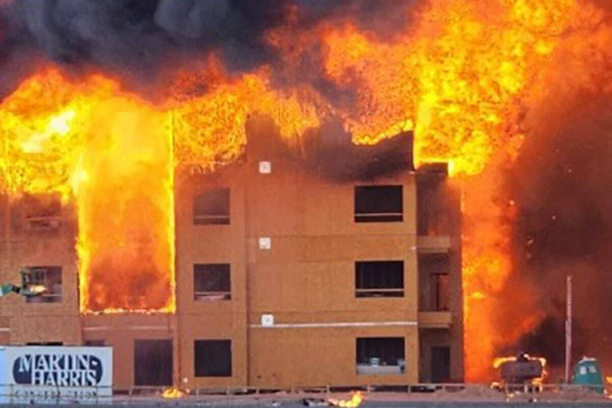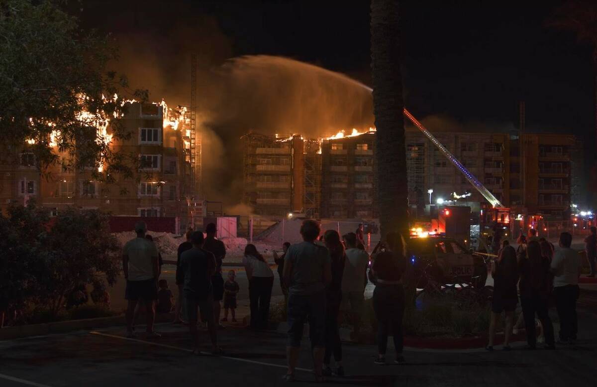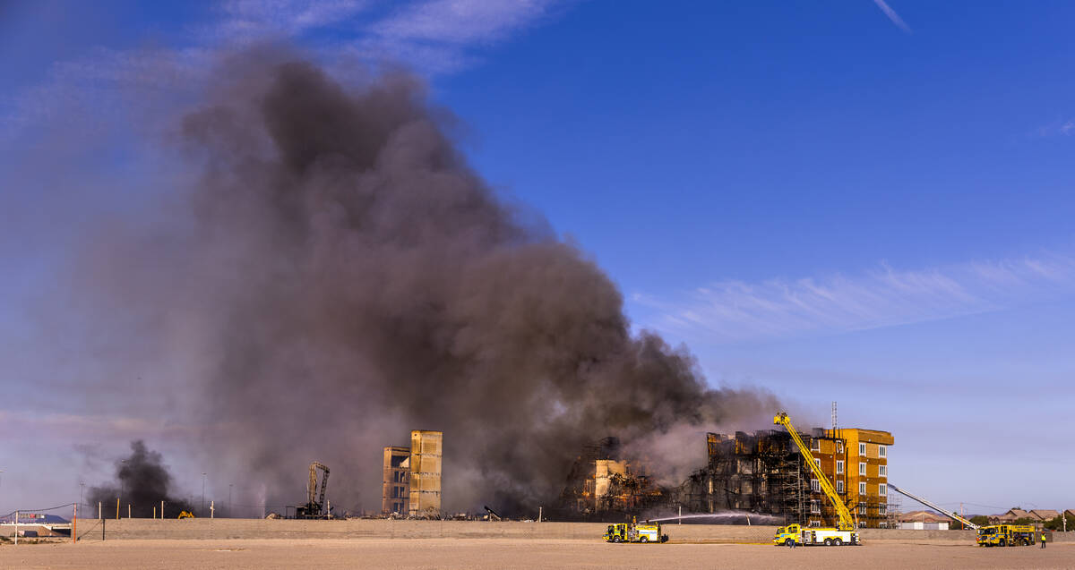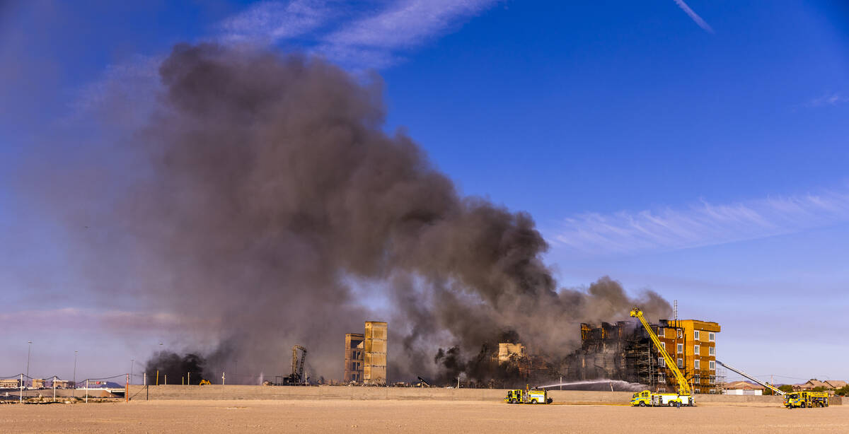 The blaze, at 8030 W. Maule Ave. near South Buffalo Drive and the 215 Beltway in the southwest valley, engulfed and destroyed an apartment complex under construction, with the flames visible for miles.
