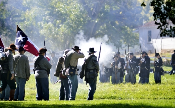 The sounds of gunfire rang out at Spring Mountain Ranch State Park on Saturday morning as more than 150 re-enactors in period clothing gathered to simulate a Civil War battle.