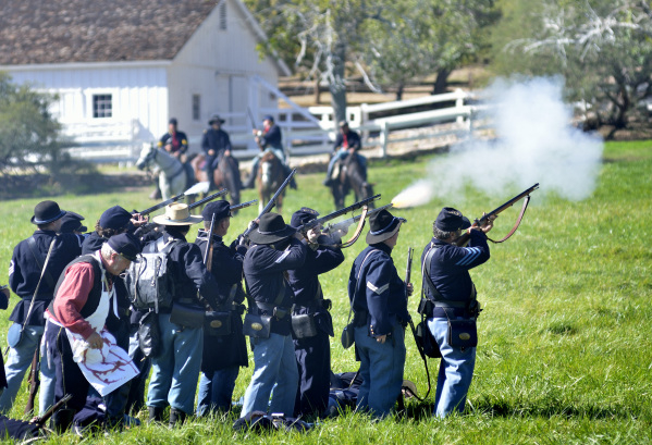 The sounds of gunfire rang out at Spring Mountain Ranch State Park on Saturday morning as more than 150 re-enactors in period clothing gathered to simulate a Civil War battle.