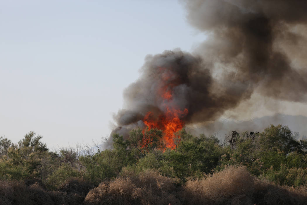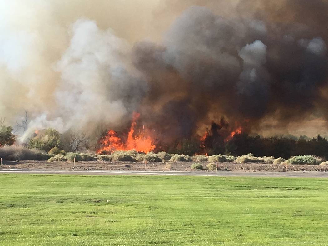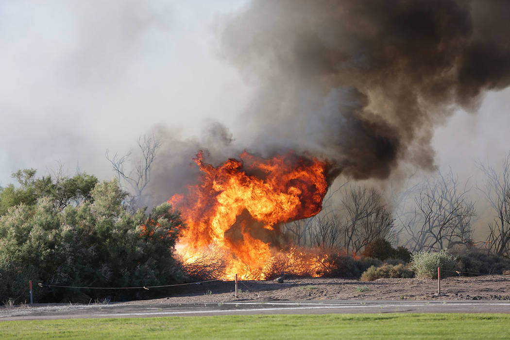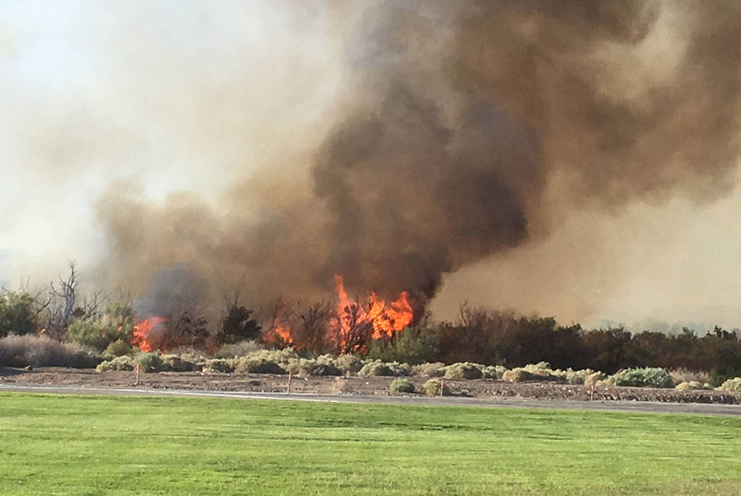 Wildfire engulfs brush near Sam Boyd Stadium and William Bennett Radio Controlled Airfield on the eastern edge of the Las Vegas Valley on Thursday, May 17, 2018. Michael Quine/Las Vegas Review-Journal @Vegas88s