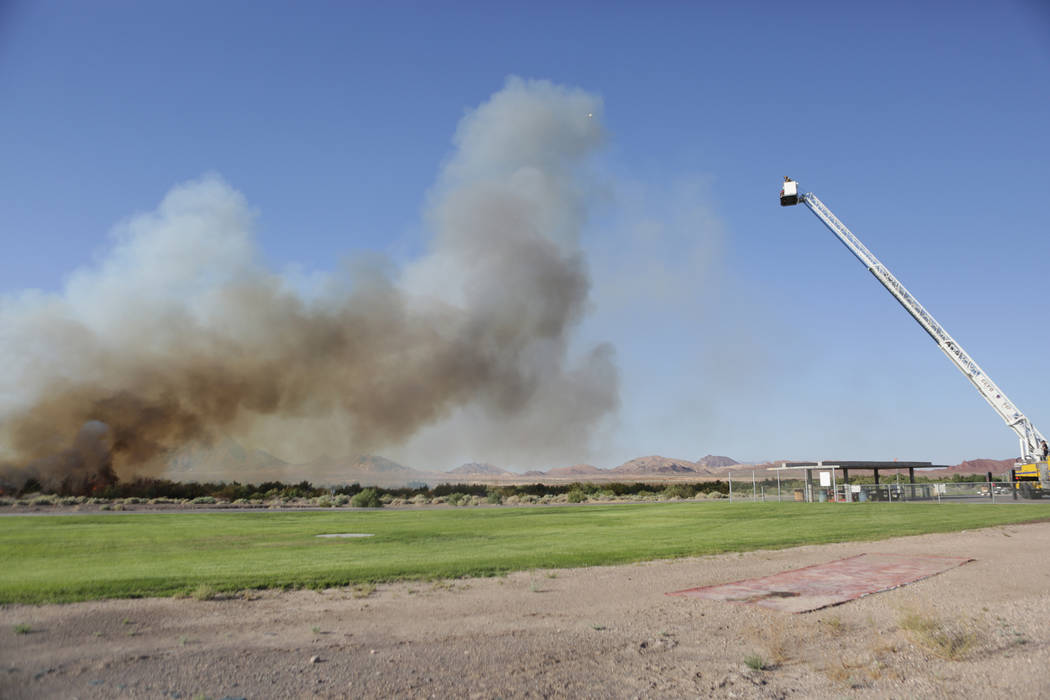 Firefighters observe a brush fire near Sam Boyd Stadium and William Bennett Radio Controlled Airfield on the eastern edge of the Las Vegas Valley on Thursday, May 17, 2018. Michael Quine/Las Vegas Review-Journal @Vegas88s