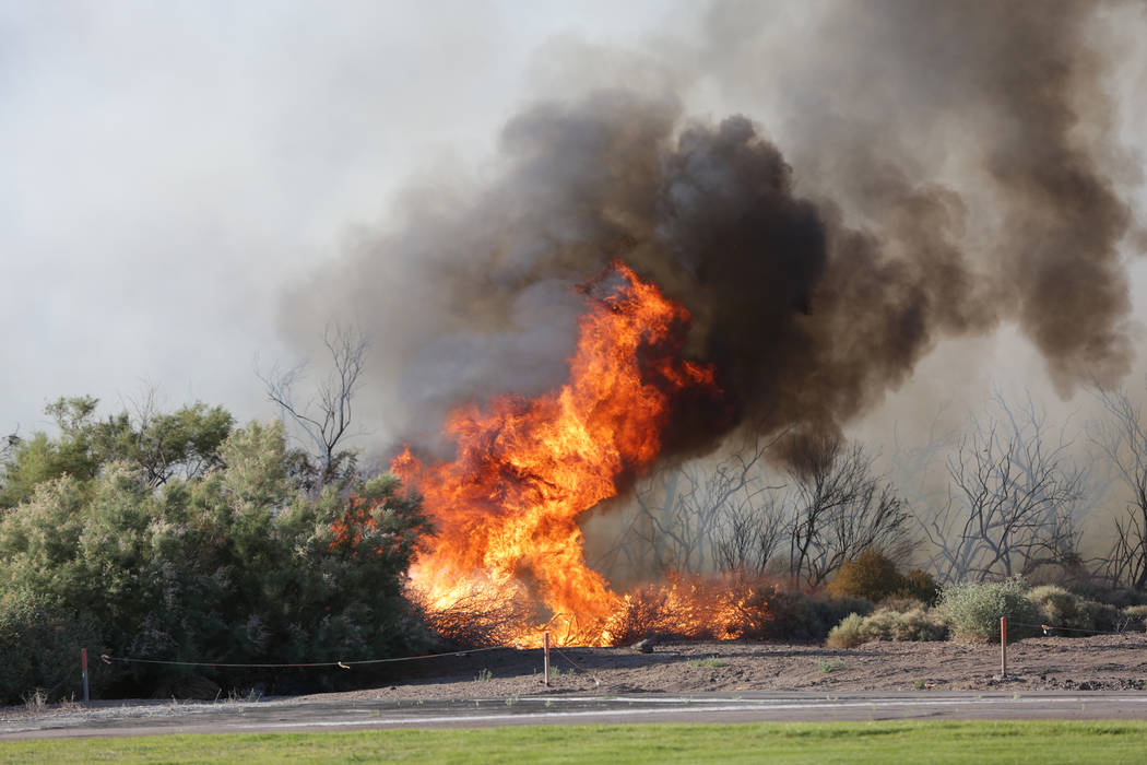 Wildfire engulfs brush near Sam Boyd Stadium and William Bennett Radio Controlled Airfield on the eastern edge of the Las Vegas valley on Thursday, May 17, 2018. Michael Quine/Las Vegas Review-Journal @Vegas88s
