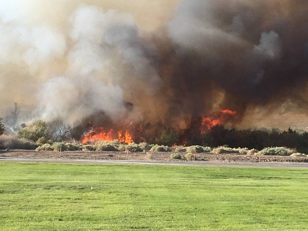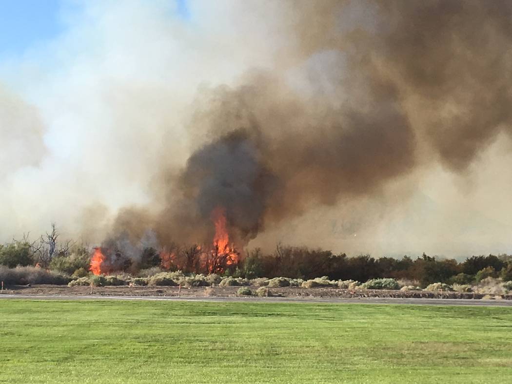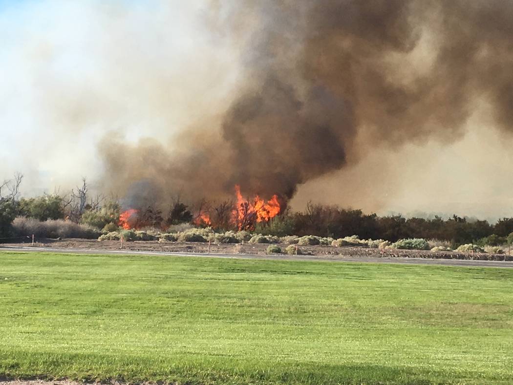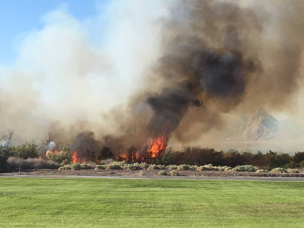 A brush fire is burning Thursday evening near Clark County Wetlands Park and Sam Boyd Stadium.