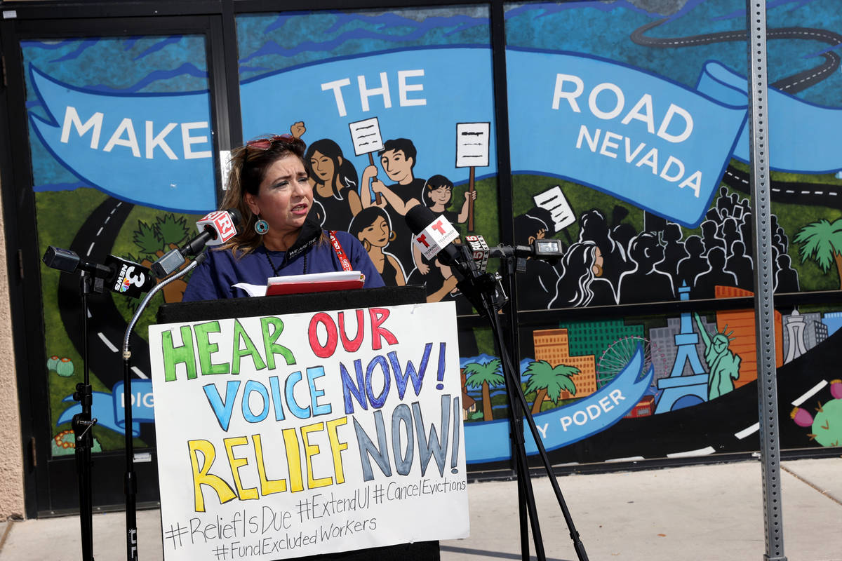 Felipe Silva, housing justice organizer with Make the Road Nevada, said the protest was part of a nationwide day of action organized by The Center for Popular Democracy, CPD Action and Unemployed Action.
