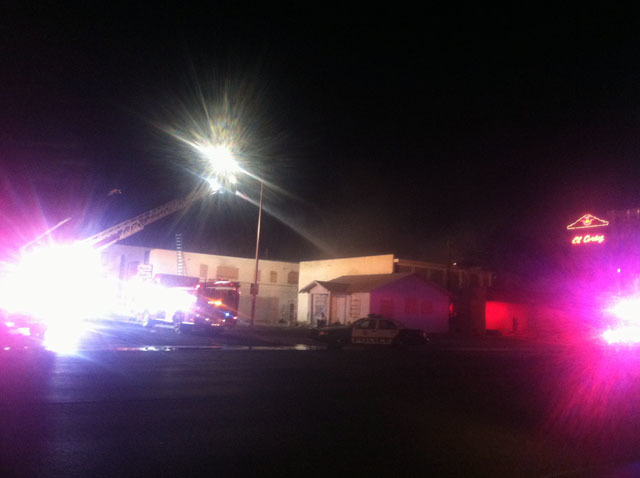 A vacant downtown apartment complex was heavily damaged by fire Tuesday night, according to the Las Vegas Fire Department.