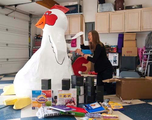 "It totally changed our lives," Lea said Wednesday while packing that giant hen pinata with secret gifts.