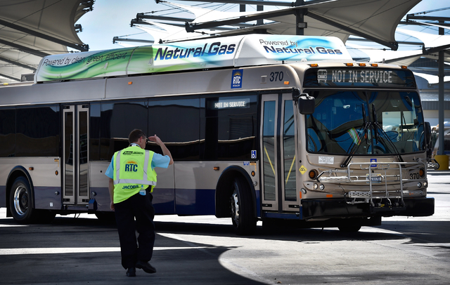 A city bus and minivan collided on Pebble Road west of Las Vegas Boulevard on Monday evening, injuring seven people.