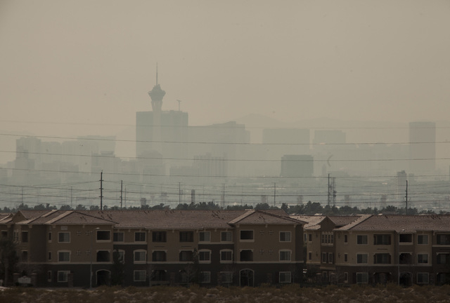 The county asked construction site operators in Las Vegas and outlying areas to take precautionary measures to prevent blowing dust. The Department of Air Quality monitors dust levels and posts alerts on the county’s forecast page if dust reaches unhealthy levels.