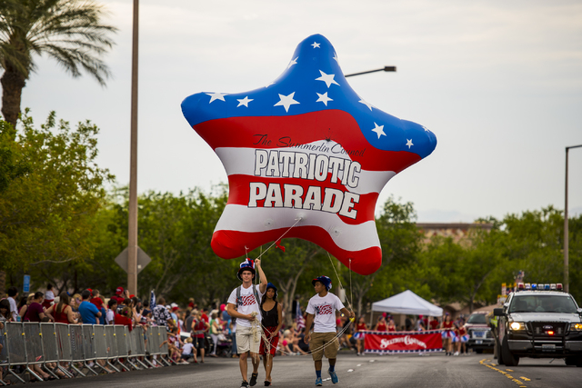 Clark County’s biggest Independence Day parade, which was expected to draw more than 35,000 people to the planned community in the city of Las Vegas, included more than 70 floats, inflatable balloons, bands and performance groups.