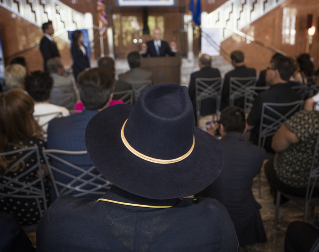 But it was literally a stamp on Thursday that brought Nevada’s top elected officials together.