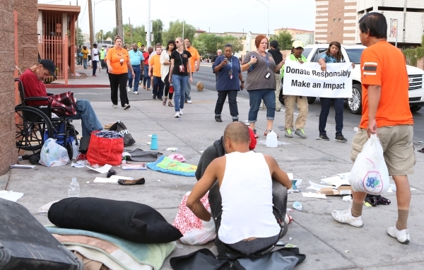Las Vegas police, guests and officials from the Life is Beautiful festival, homeless advocates and the City of Las Vegas joined together for a homeless walk to provide services to those in need.
