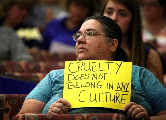“Our community is a very compassionate community on animal welfare issues,” said Stacia Newman, president of Nevada Political Action for Animals. “This is clearly an animal cruelty issue. It doesn’t matter who’s doing it as long as it’s being done. … It’s not a culture issue.”