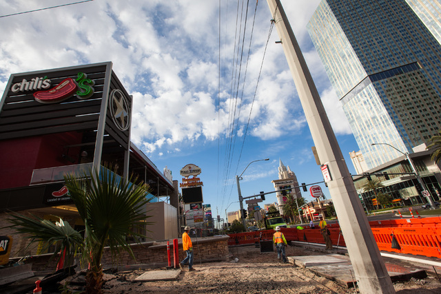 For the initial effort, the county’s work has a finish date of May 20 and has a cost of $1.9 million. The improvements include sidewalk widening, relocating signs, installing curb handicap ramps and new pavement markings. About 25 fire hydrants will be relocated out of the path of pedestrians and to the landscaped median in the middle of Las Vegas Boulevard.