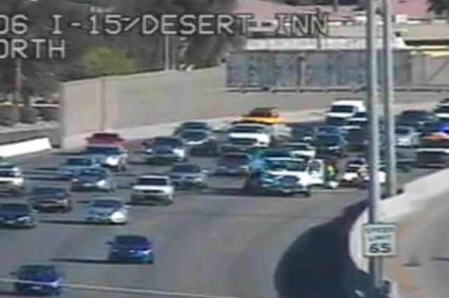 The crash, reported to the Nevada Highway Patrol at 8:11 a.m., blocked left lanes, according to the Regional Transportation Commission of Southern Nevada.