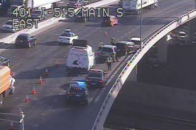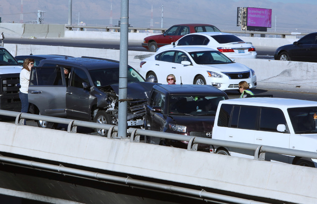 A multi-vehicle crash on southbound U.S. Highway 95 near Casino Center Boulevard tied up traffic Friday morning, the Nevada Highway Patrol said.