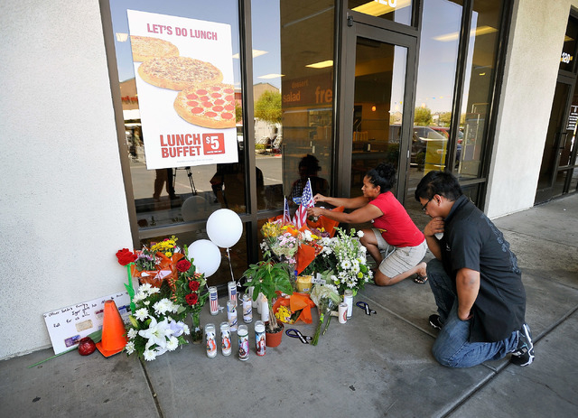 When he heard the radio traffic say two officers on their break had been shot at a CiCi’s Pizza near Stewart Avenue and Nellis Boulevard, Nicol looked at his watch.