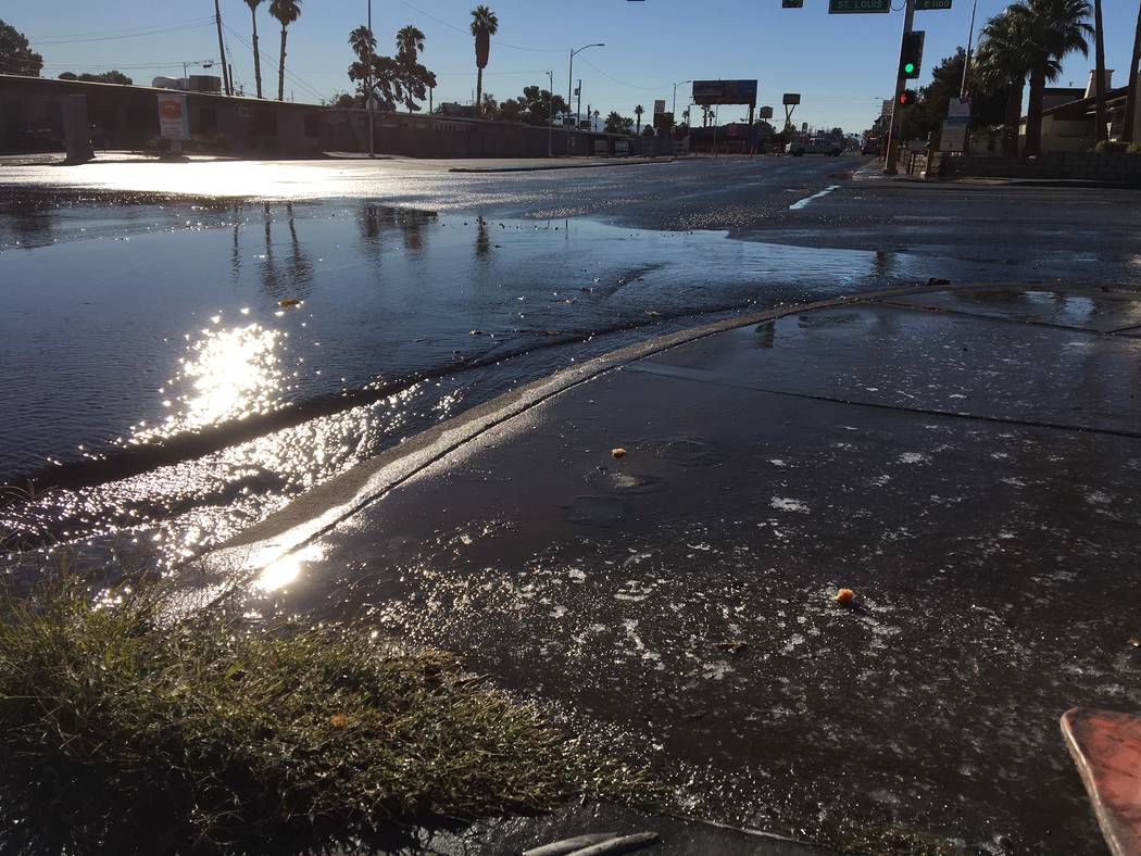 A “number of factors” contributed to the break, including the age and condition of the pipe and the cold weather, according to Las Vegas Valley Water District spokesman Damon Hodge.