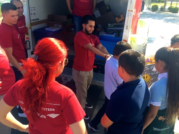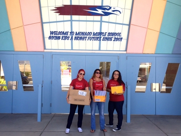 On Sept. 2, Bank of America volunteers hand-delivered nearly 10,000 supplies to Lynch Elementary, 4850 Kell Lane; Miller Elementary, 5100 W. Sahara Ave.; and Monaco Middle School, 1870 N. Lamont St., for students in need. Items collected included paper, backpacks, pens and pencils, physical education equipment and school uniform garments.
