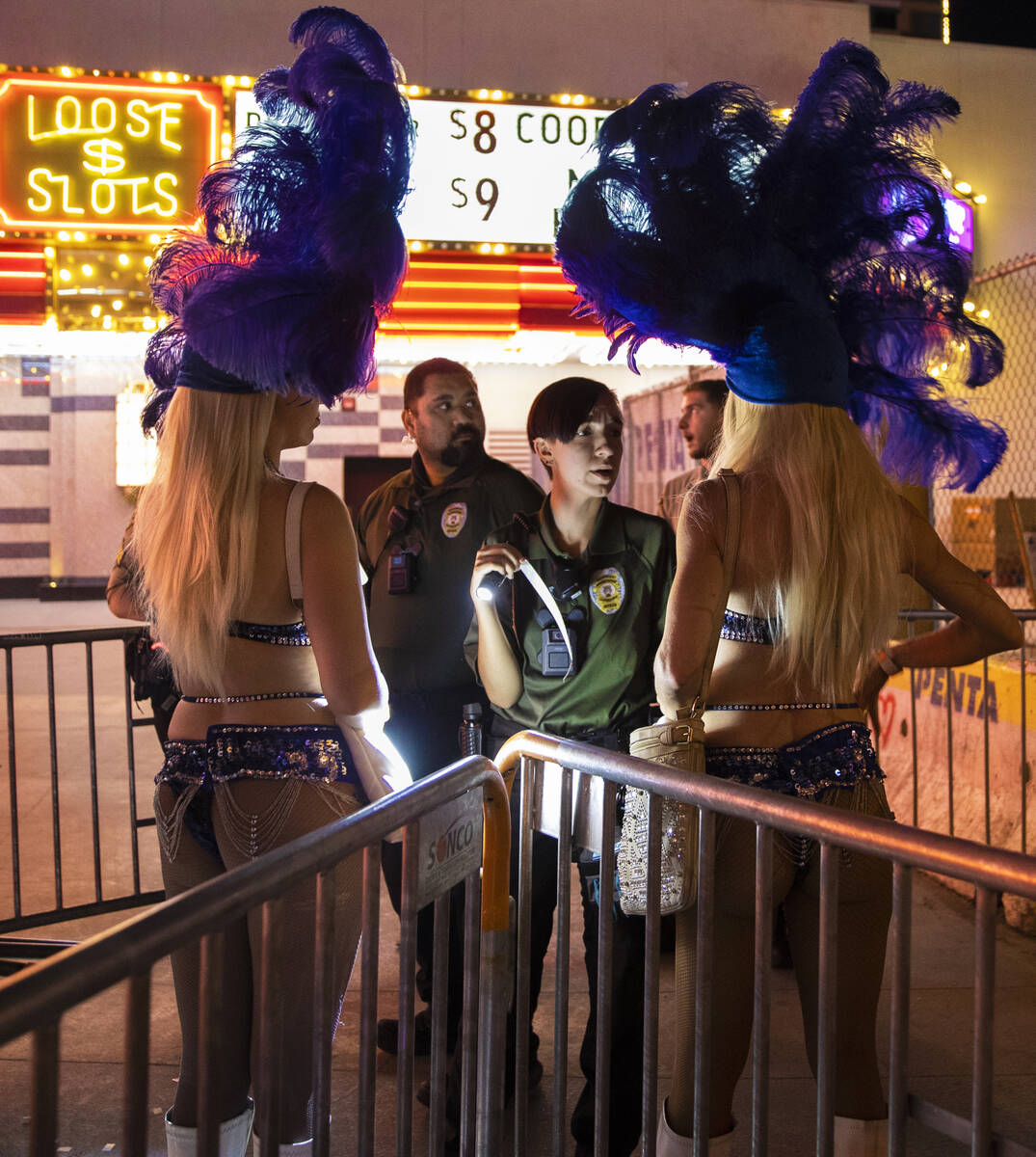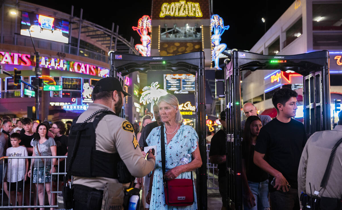 The Fremont Street Experience — a private entity that operates the area’s three stages, video canopy screen and the SlotZilla zipline — runs the security points through special event permits, allowing it to prevent weapons from entering the tourist area even for those who hold a concealed carry permit. The organization previously said the security measures will run on weekends until further notice.