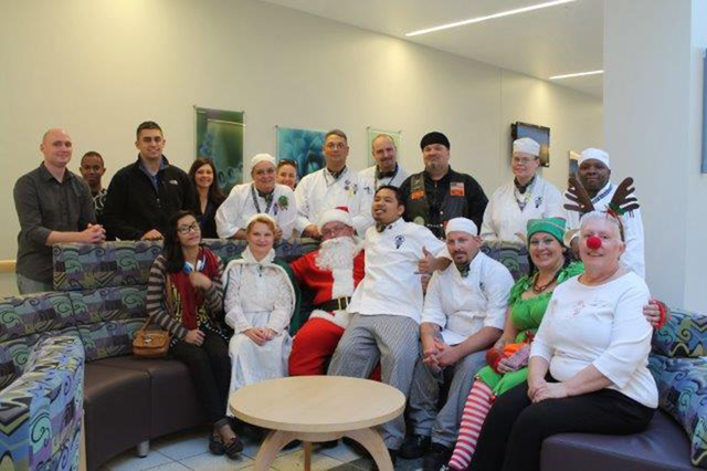 The Le Cordon Bleu-Las Vegas Veterans Club partnered with active service members, the Marine Riders, and Pastry Chef Brenda Villatoro along with her baking students to sponsor Cookies With Santa at the Southern Nevada Veterans Hospita Dec. 20l. Santa and Mrs. Claus extended their holiday greetings to visitors, patients, and staff throughout the facility. The Veterans Club provided hot apple cider, hot chocolate, and candy. Pastry students in Chef Villatoro’s international patisserie class baked 1,200 assorted treats that included holiday, chocolate chip, sugar with jam, spritz, and oatmeal cookies. LCB-LV Veterans Club is sponsored by The Karen J. Wagner VFW Post #12119.