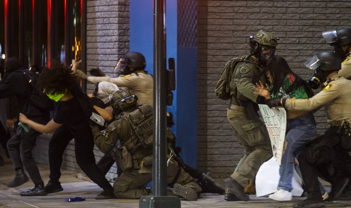 Police deploy tear gas, shoot projectiles at ICE protesters in downtown Las Vegas