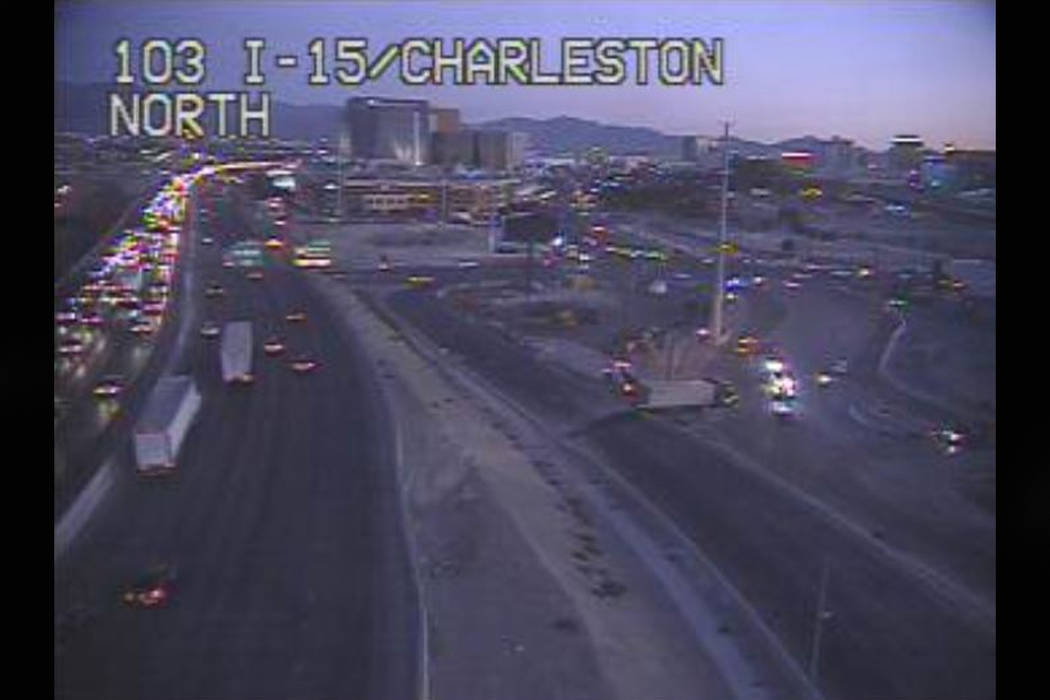 The crash was reported just after 4 a.m. on the eastbound Charleston off-ramp of northbound Interstate 15, according to Nevada Highway Patrol. Traffic cameras show a trail of dirt and debris leading off I-15 and across the off-ramp.