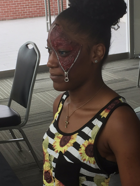 Taylor Woods, 17, came with makeup that looked like the skin around her eye was being unzipped.