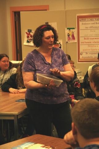 She advised the students not to stop in the middle of the crosswalk and to refrain from walking into the street from between two cars. She also used a jelly mold of a human brain and a watermelon to demonstrate the importance of keeping heads safe.