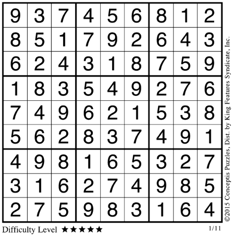 Answers to Sudoku and crossword puzzles from Jan. 22, 2015, View editions.