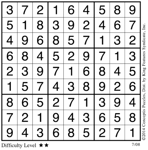 Puzzle solutions, July 24-30, 2014 Staff 11 years ago Answers to Sudoku and crossword puzzles from July 24, 2014, View editions.