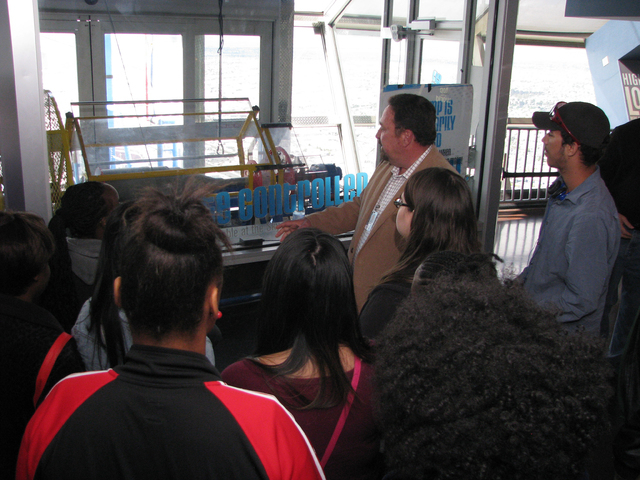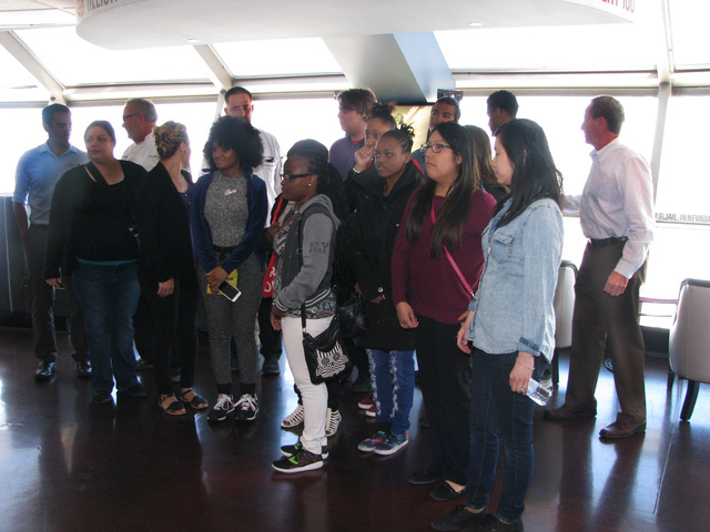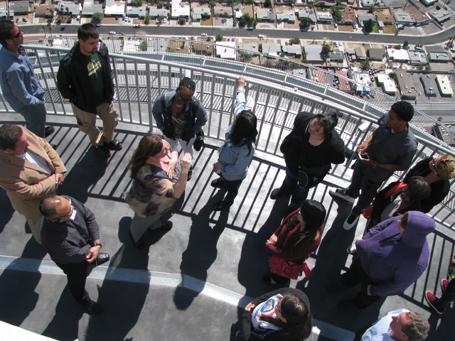 While staring out at what is essentially a diving platform 855 feet above concrete and imagining the plummet, it might have been a little hard to focus on the statistics, facts and science that Michael Mann, director of ride engineering for the Stratosphere, was explaining, but a group of 17 students from Goodwill’s ELITE program listened with rapt attention.